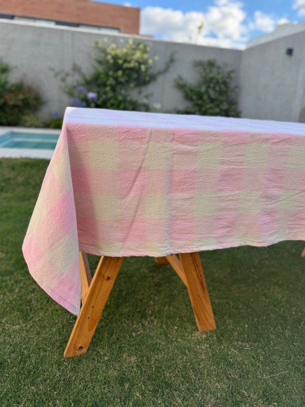 Mantel de tusor picnic color rosa con crudo